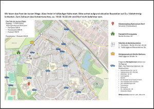 ca.16:15 Uhr  – Aufmarsch der Fahnen und Blumenhörner am Rathaus unter der Leitung des Jäger Hauptmanns Pascal Böhm – Hierzu bitten wir alle Fahnenabordnungen beim Ankommen am Paradeplatz direkt zum Fahnenaufmarsch in Richtung Norfer Rathaus vorzugehen.
