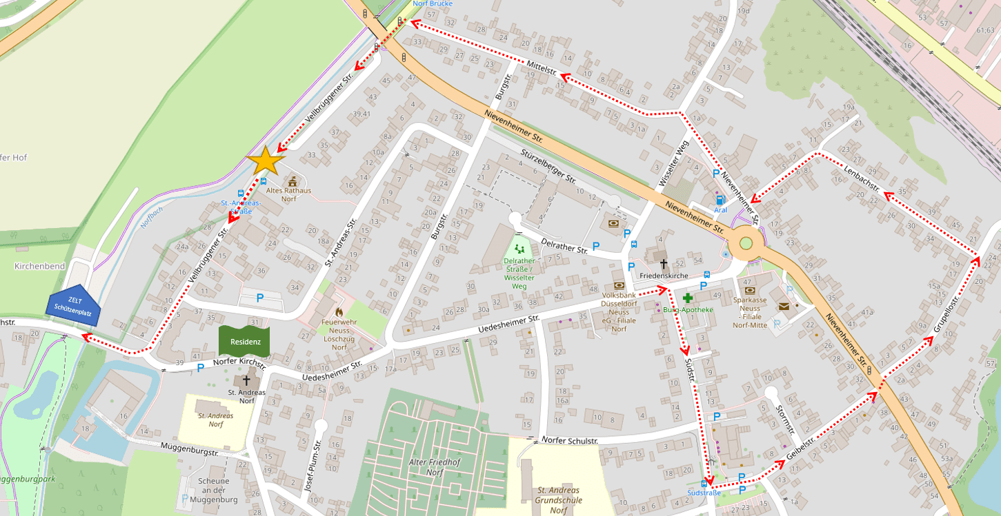 Bahn-, Nievenheimer -, Rüdesheimer -, Norfer Kirchstraße – Zelt